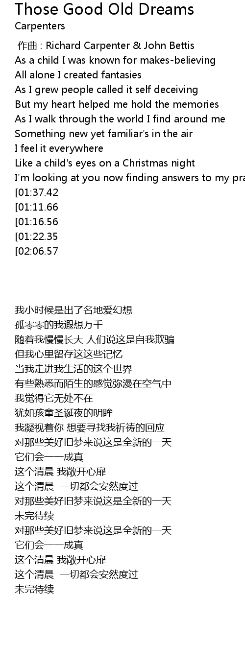 | [02:46.15][01:37.42][01:05.67] | It' s a new day for those good old dreams |