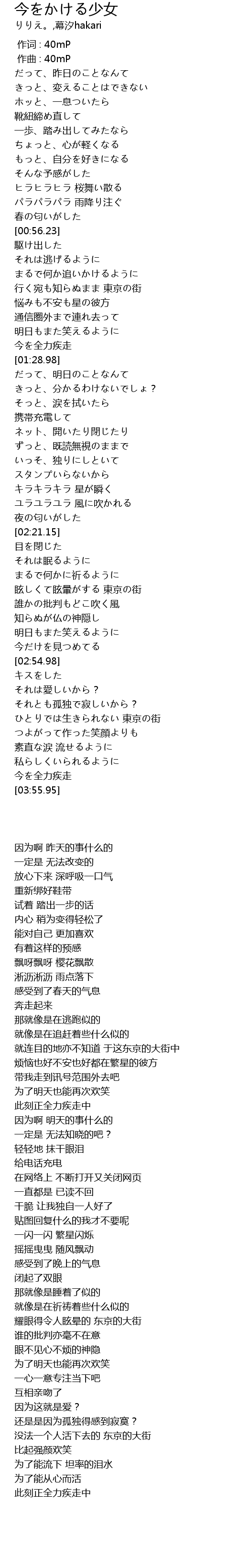 | [00:00.000] | 作词 : 40mP |