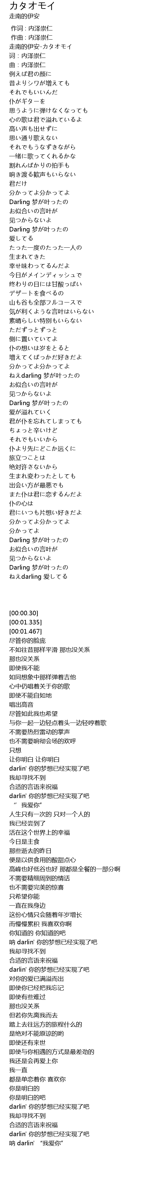 | [00:00.30] | 走南的伊安-カタオモイ |