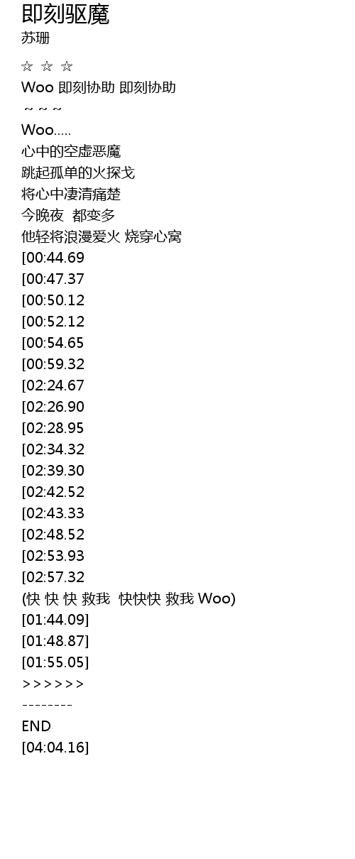 | [03:09.68][02:24.67][01:07.42] | 你即刻驱魔 |