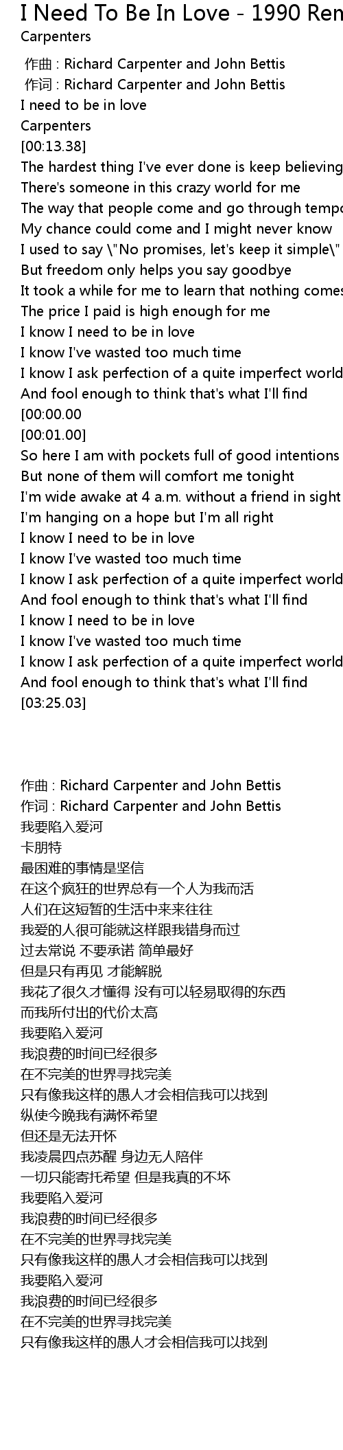 | [02:52.36] | I know I need to be in love |
