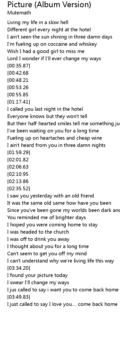 | [01:03.38][00:42.68] | I put your picture away |