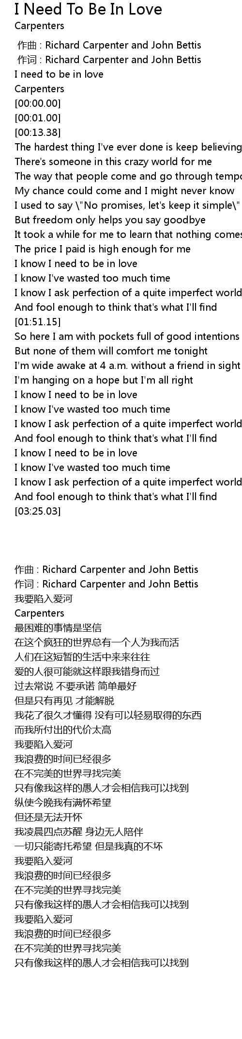 | [02:52.36] | I know I need to be in love |