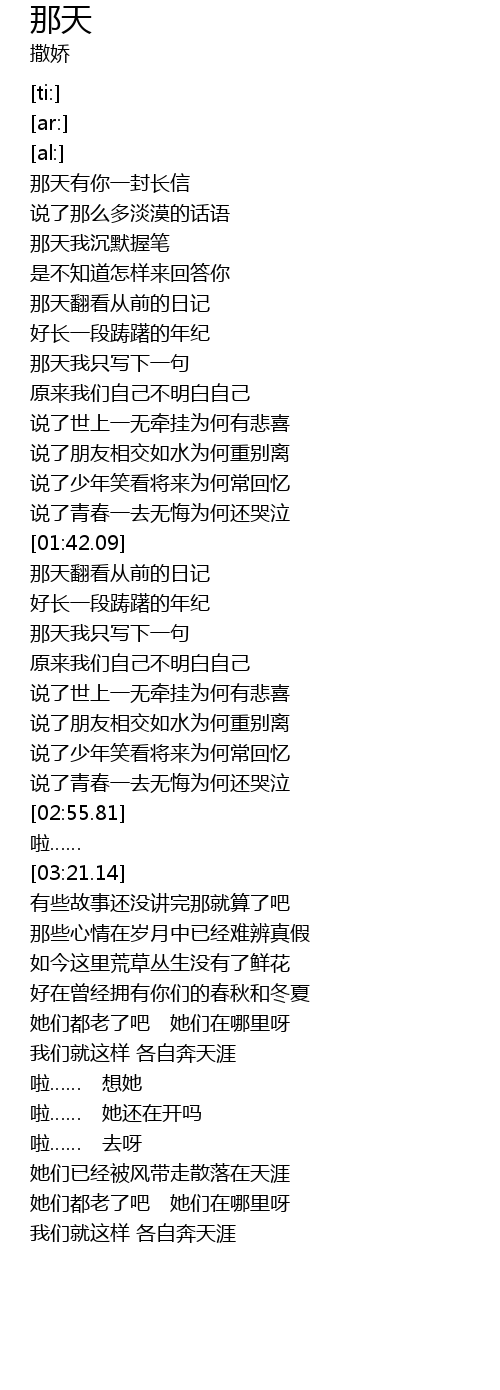 | [02:06.21] | nà tiān fān kàn cóng qián de rì jì |