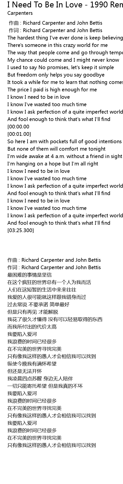 | [00:00.00] | zuò cí : Richard Carpenter and John Bettis |