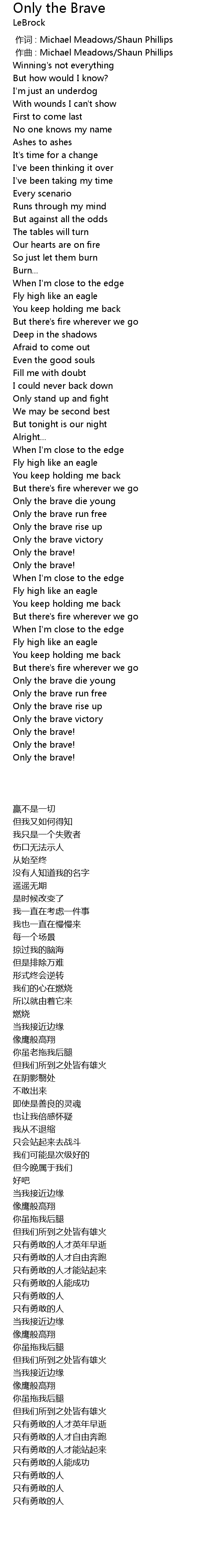 | [02:52.93] | Only the brave rise up |