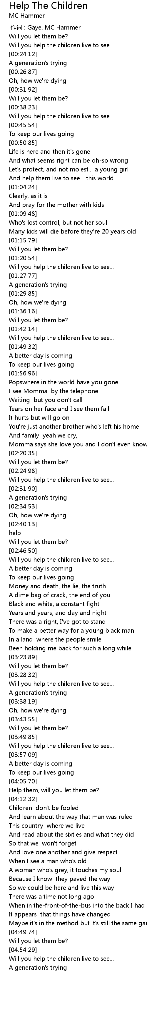 | [04:56.47] | Will you help the children live to see... |