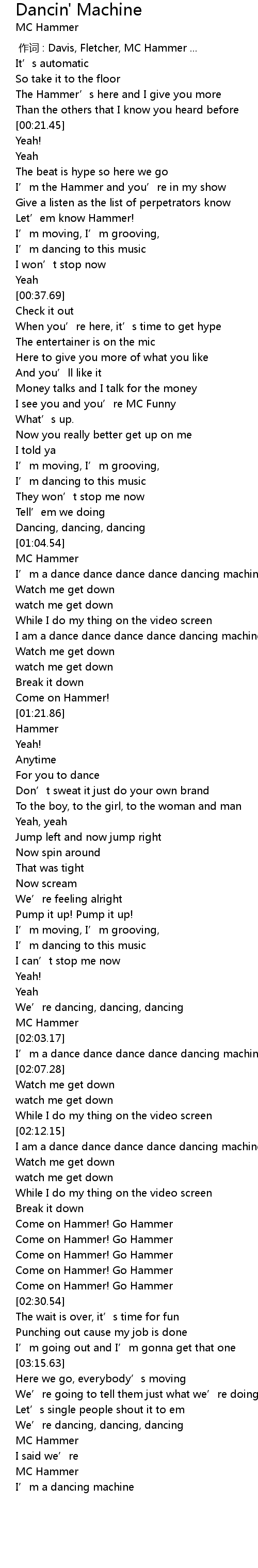 | [00:00.00] | zuò cí : Davis, Fletcher, MC Hammer ... |