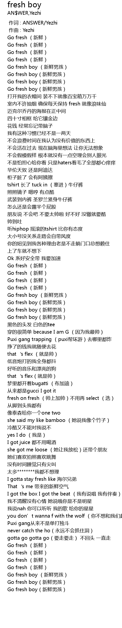 | [02:54.527] | Go fresh boy (新鲜男孩) |