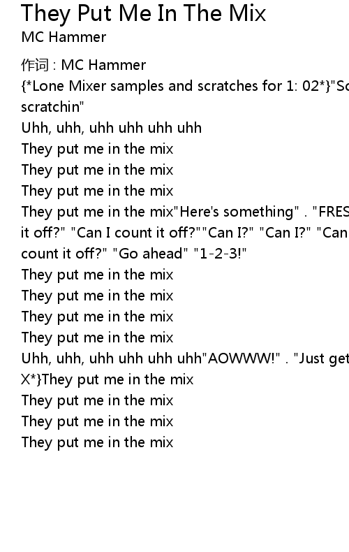 | They put me in the mix"Here's something" . "FRESH" . "What is it?""Can I count it off?" "Can I count it off?""Can I?" "Can I?" "Can I?" "Can I?" "Can I?""Can I count it off?" "Go ahead" "1-2-3!" | |