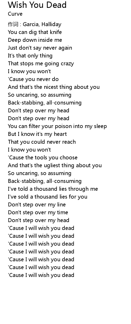 | ' Cause I will wish you dead | |