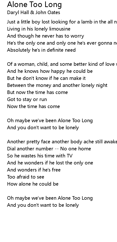 Oh maybe we've been Alone Too Long |