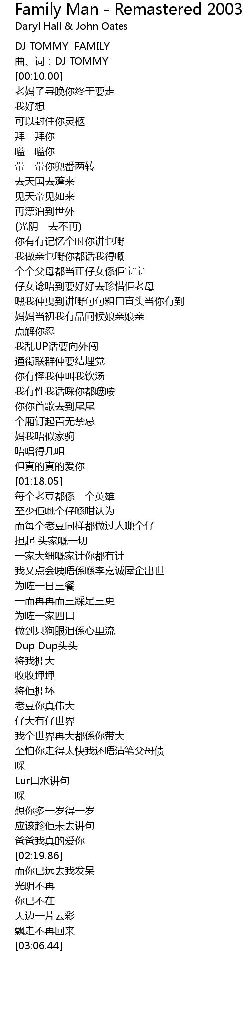 | [00:52.43] | 仔女谂唔到要好好去珍惜佢老母 |