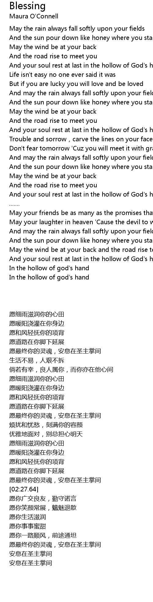 | [00:00.00] | May the rain always fall softly upon your fields |