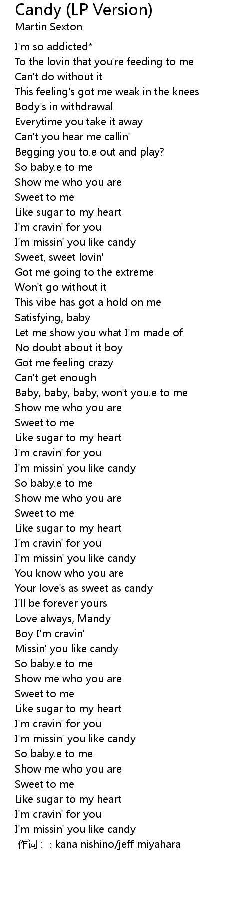 | [02:51] | I' m missin' you like candy |
