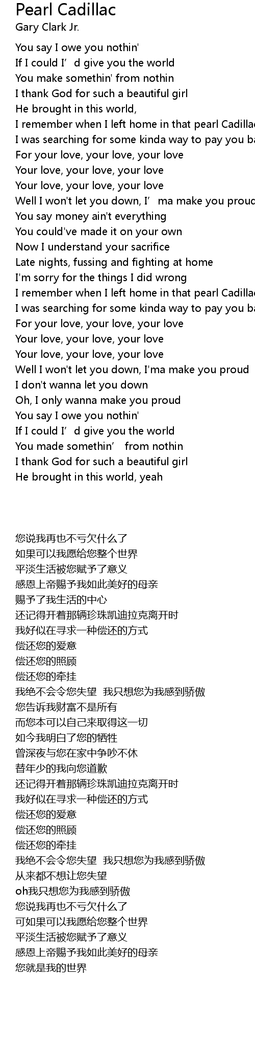 | [01:03.81] | I remember when I left home in that pearl Cadillac |