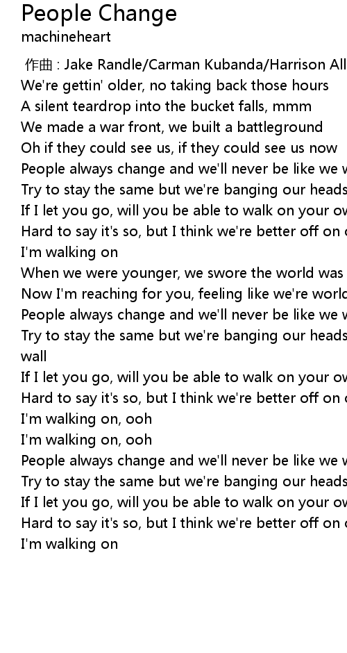 | [00:53.26] | People always change and we' ll never be like we were before |