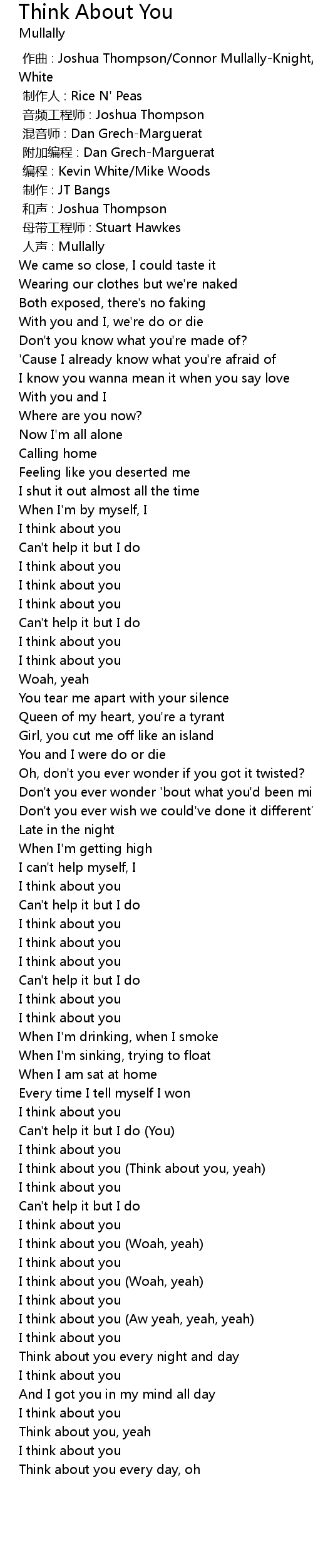 | [02:34.02] | I think about you (Woah, yeah) |