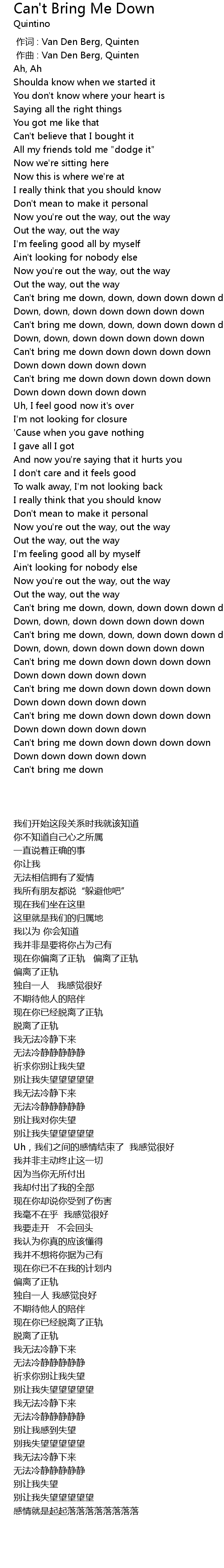 | [01:52.72] | Can' t bring me down, down, down down down down down |