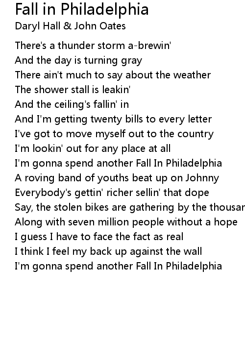 I'm gonna spend another Fall In Philadelphia |