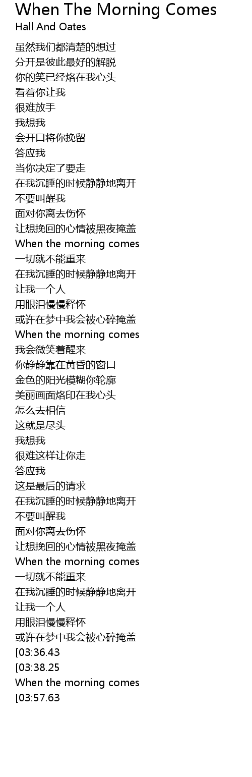 | [03:46.50][03:36.43] | When the morning comes |