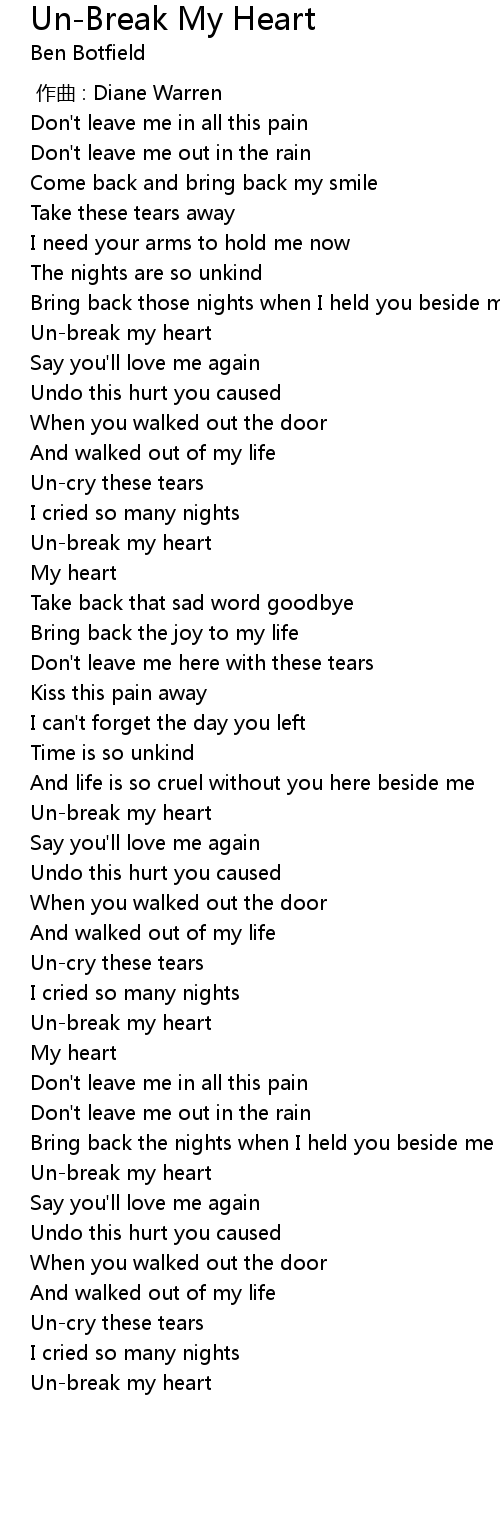 | [00:41.52] | Unbreak my heart |