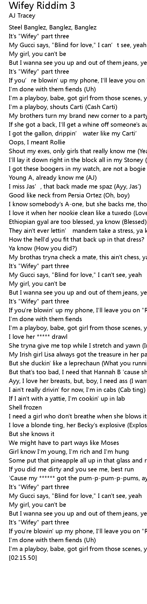 | [00:56.94] | I love it when her nookie clean like a tuxedo (Love it) |