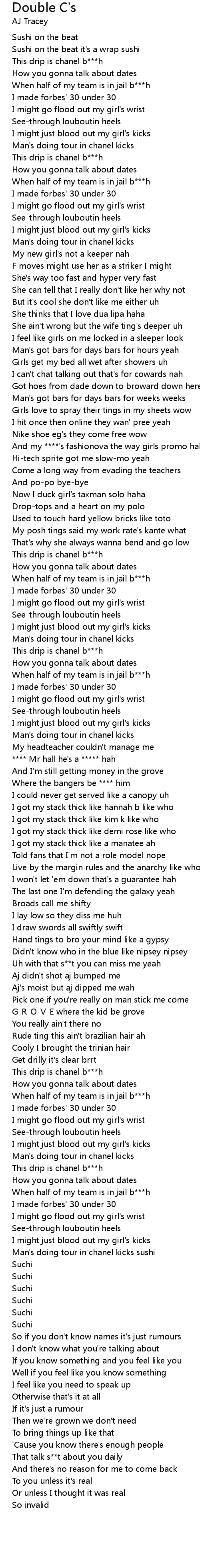 | [00:41.22] | This drip is chanel b***h |