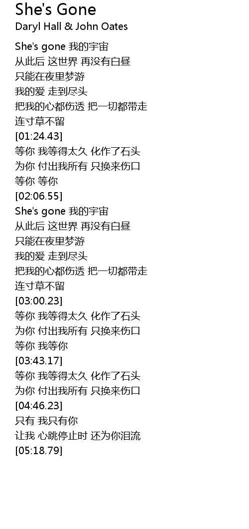 | [00:32.15] | She' s gone wǒ de yǔ zhòu |