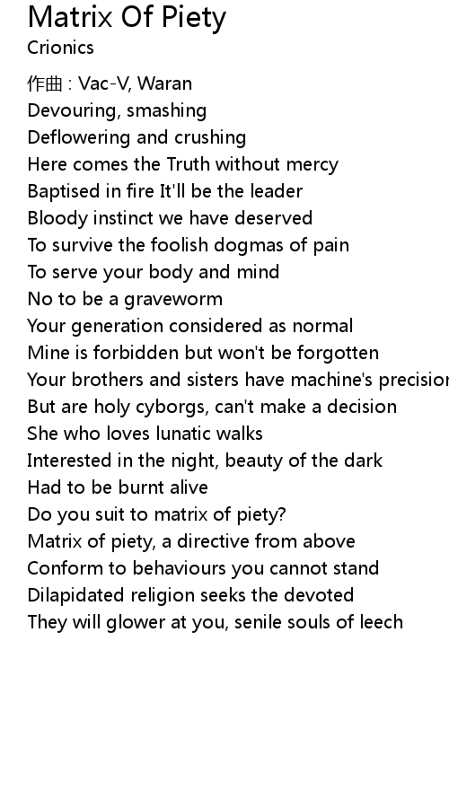 | Song | Matrix Of Piety |