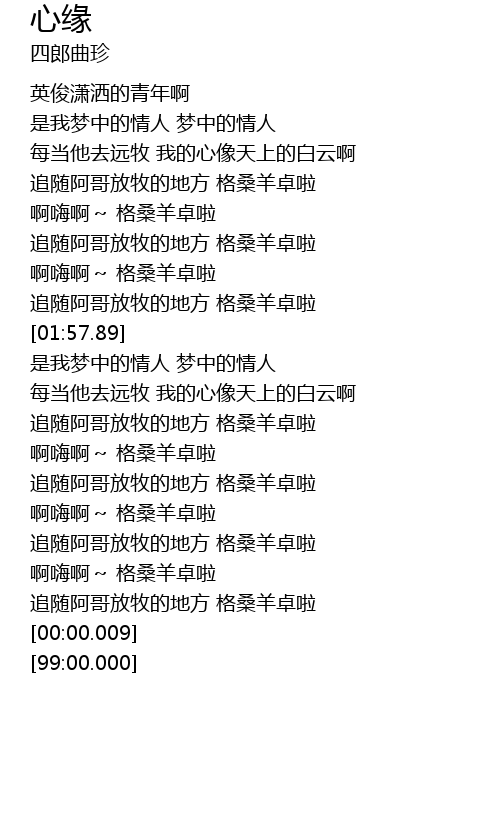 | [01:49.67] | 追随阿哥放牧的地方 格桑羊卓啦 |