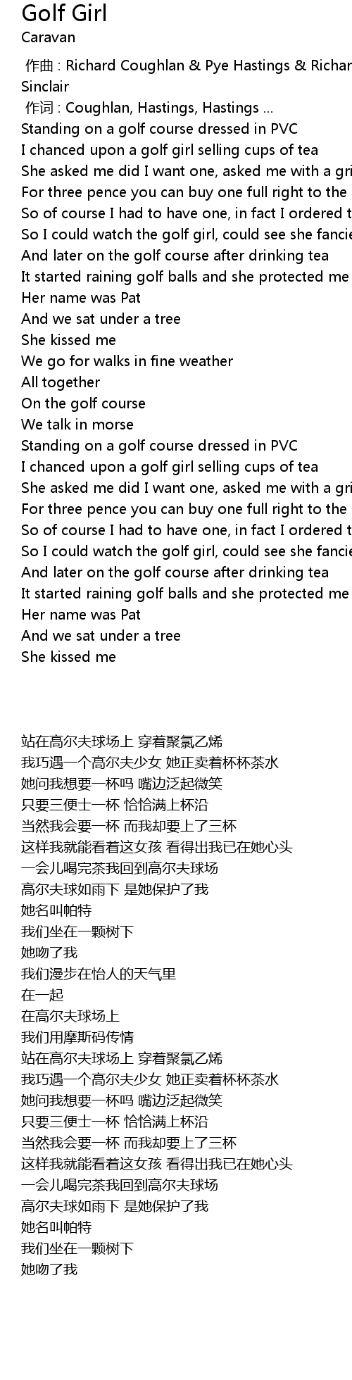 | [00:49.67] | So I could watch the golf girl, could see she fancied me |