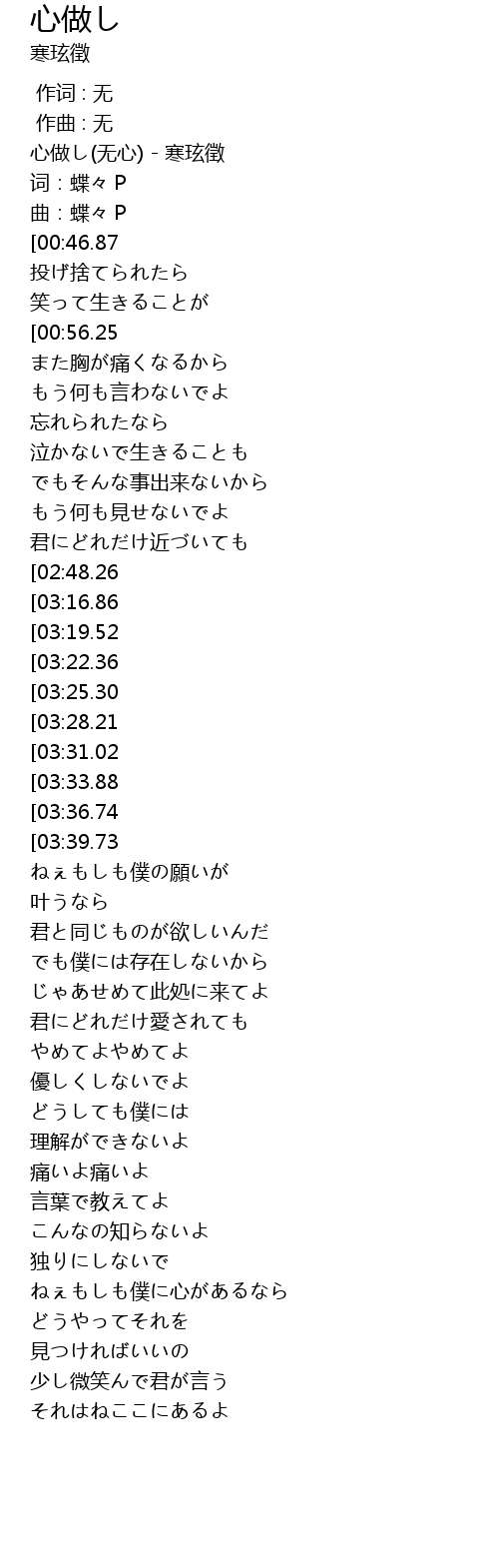 | [00:00.38] | 心做し(无心) - 寒玹徵 |