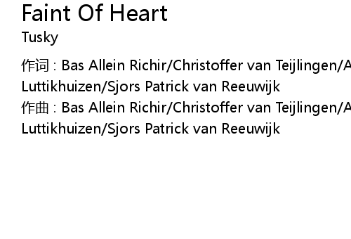 | 作词 : Bas Allein Richir/Christoffer van Teijlingen/Alfred van Luttikhuizen/Sjors Patrick van Reeuwijk | |