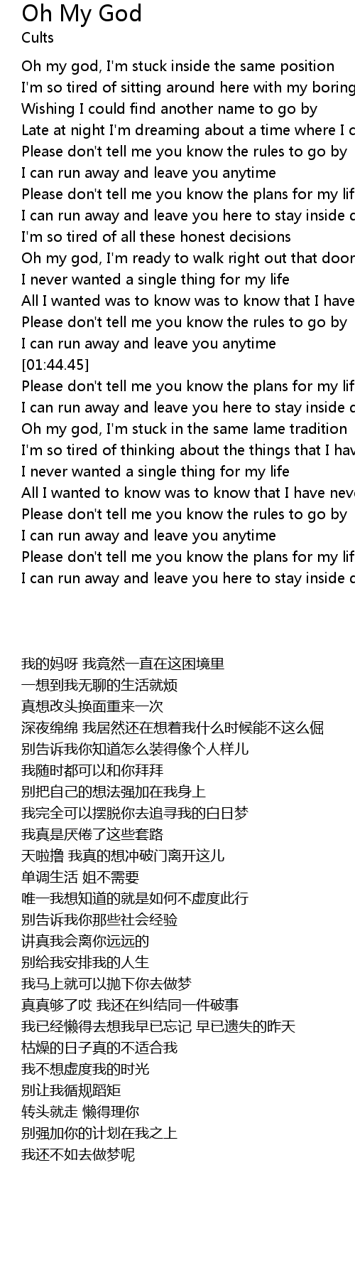 | [02:00.15] | Oh my god, I'm stuck in the same lame tradition |