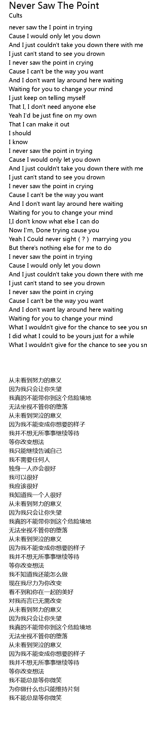 | [00:00.87] | never saw the I point in trying |