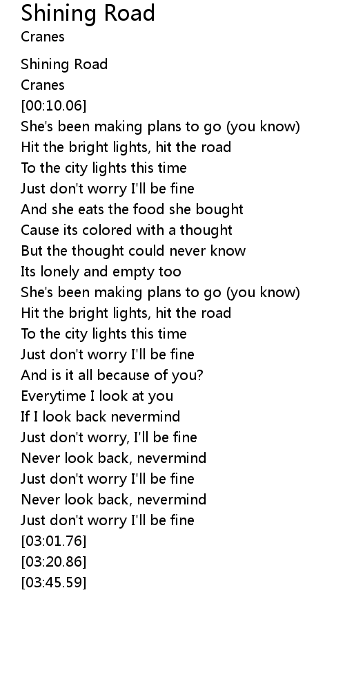 | [01:26.04] | Hit the bright lights, hit the road |