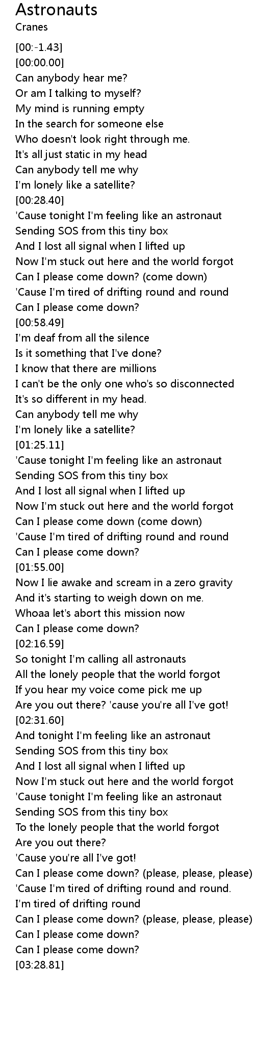 And tonight I'm feeling like an astronaut |