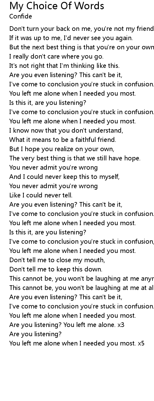 | You left me alone when I needed you most. x5 |