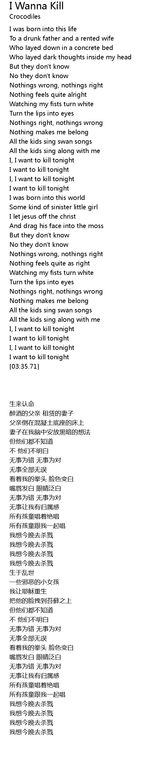 I, I want to kill tonight |