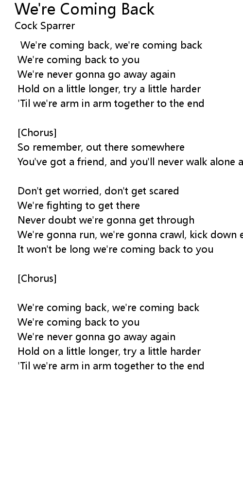 We're coming back, we're coming back |