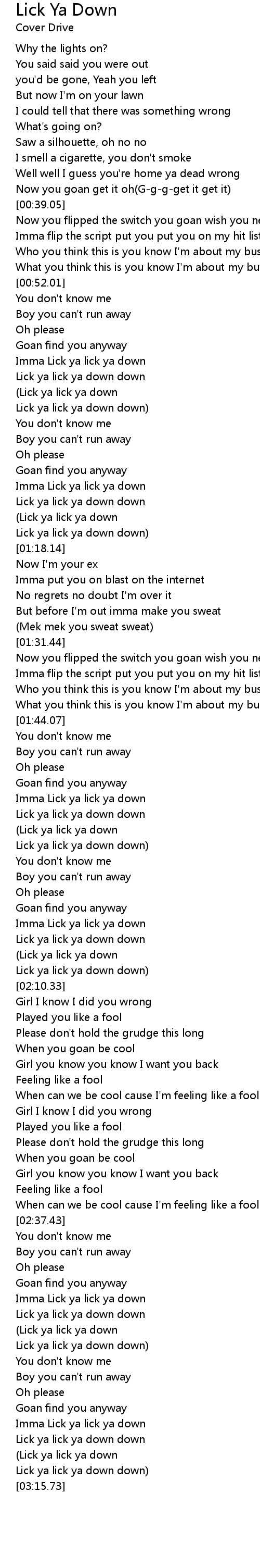 Lick ya lick ya down down |