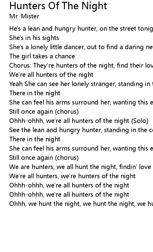 Ohhh-ohhh, we're all hunters of the night (Solo) |