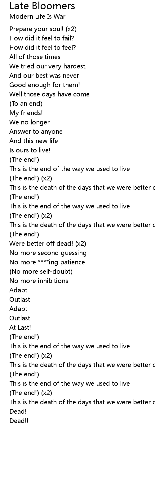 This is the death of the days that we were better off dead |