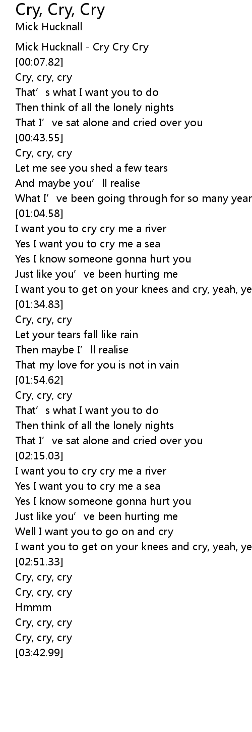 | [00:01.53] | Mick Hucknall - Cry Cry Cry |