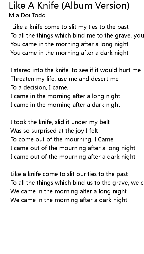 Like a knife come to slit my ties to the past |
