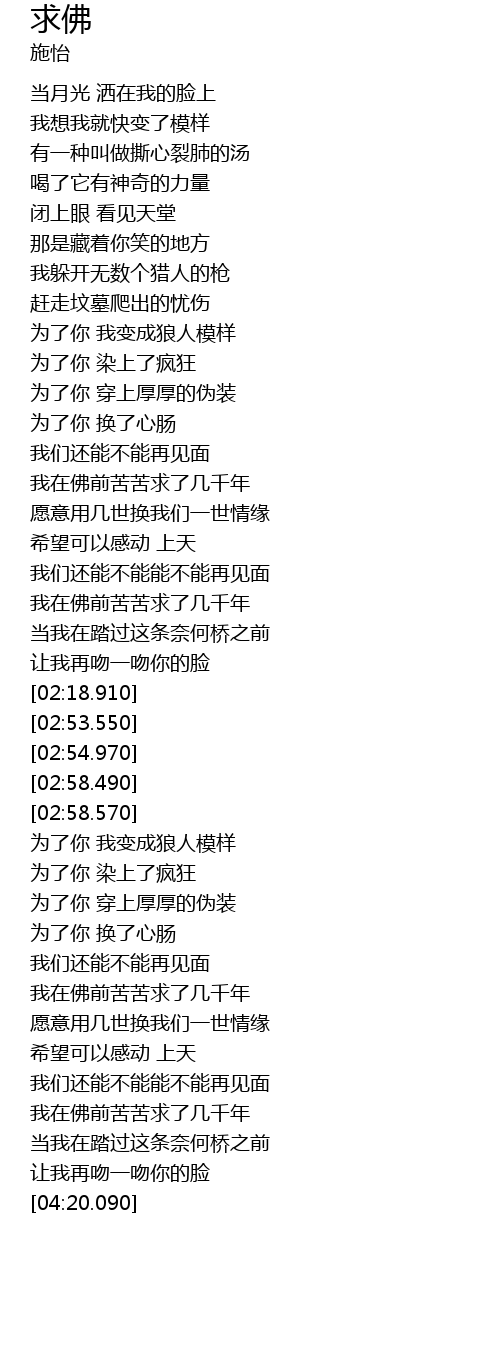 | [01:49.060] | 我在佛前苦苦求了几千年 |