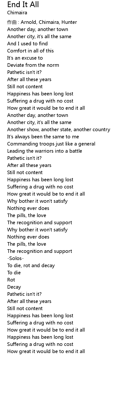 | 作曲 : Arnold, Chimaira, Hunter | |