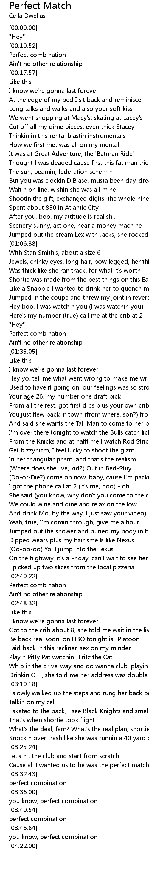 Whip in the drive-way and do wanna club, playin Nas 'One Love' |