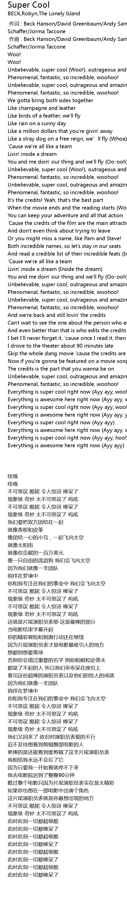 | [01:59.66] | Unbelievable, super cool, outrageous and amazing |